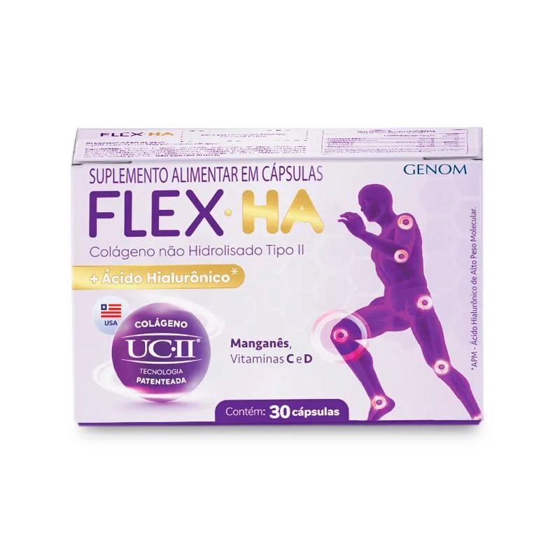 Flex ha é um suplemento alimentar em cápsulas que auxilia nas articulações, combinado com uma alimentação saudável.